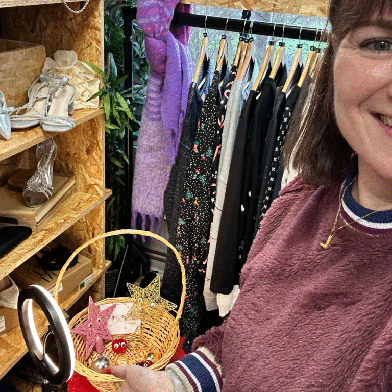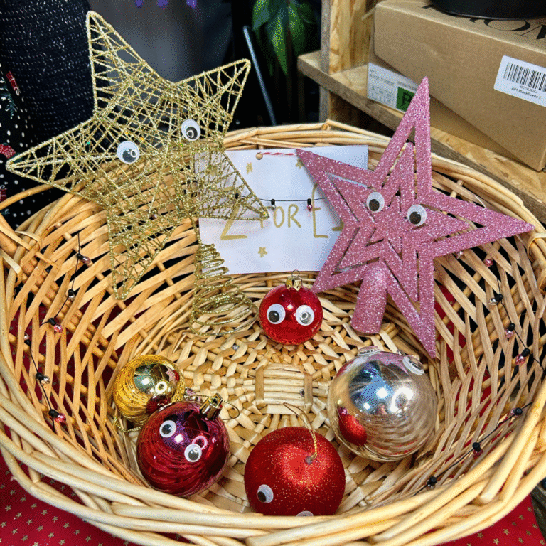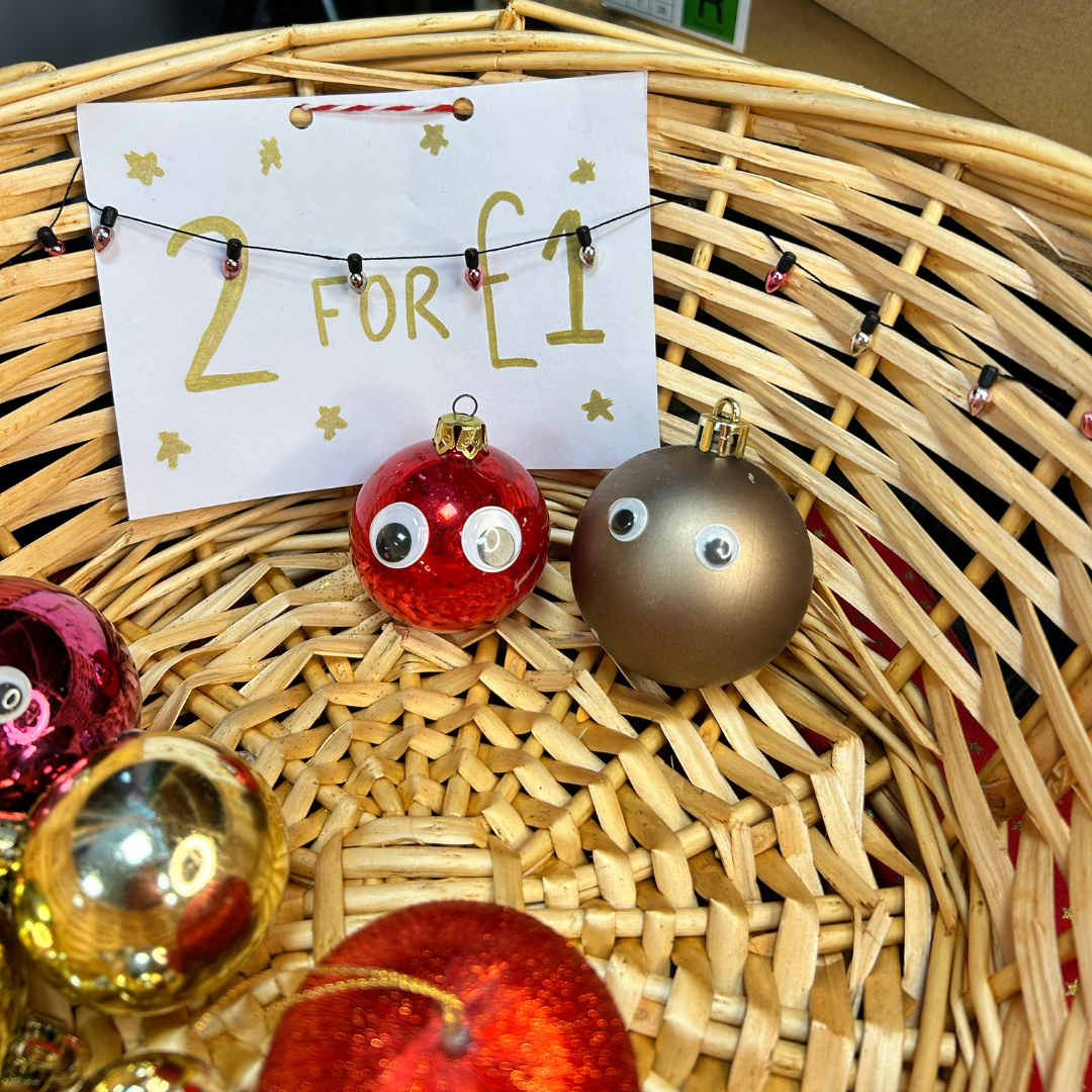 I got in touch with one of my favourite places, R:evolve Recycle, who run swap and thrift shops in Rutherglen and Cambuslang, and asked if I could spend a day filming there with my basket of baubles to give the films some authenticity. Thankfully, they agreed, and not one member of staff batted an eyelid as I shuffled googly-eyed decorations around the shop floor.