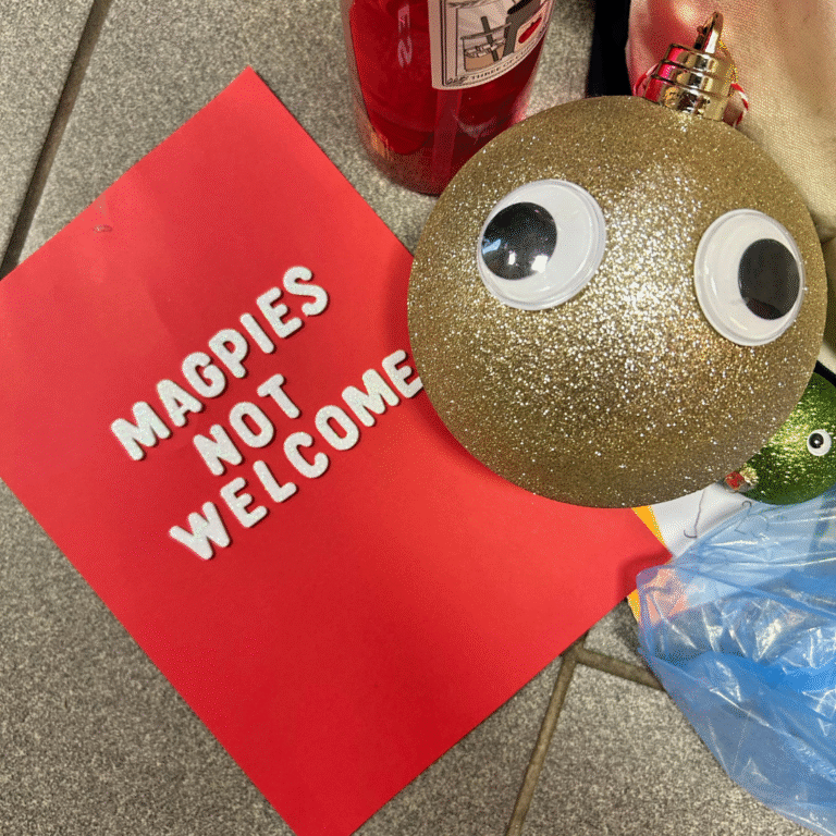 Throughout the process there were a few frustrations. I discovered in the edit that the shinier baubles had caught the reflection of my phone, and I trekked to Rutherglen High Street to film a magpie only to find not a single one in sight. But art is enhanced by restraint… or something like that… isn’t it?